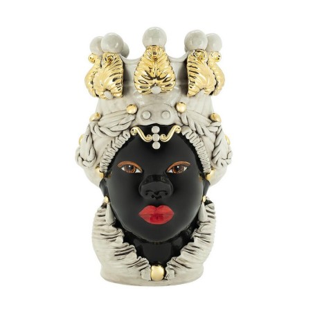 Sicilian traditional moor-head shaped ceramic vase, totally hand made and hand painted by the original artisanal producer from Caltagirone - Sicily, restyled and exclusively distributed by Abhika.